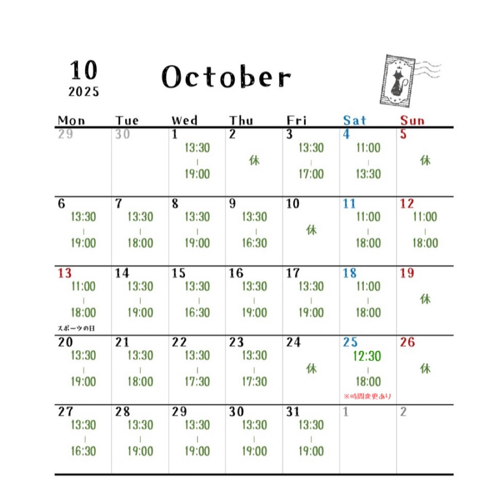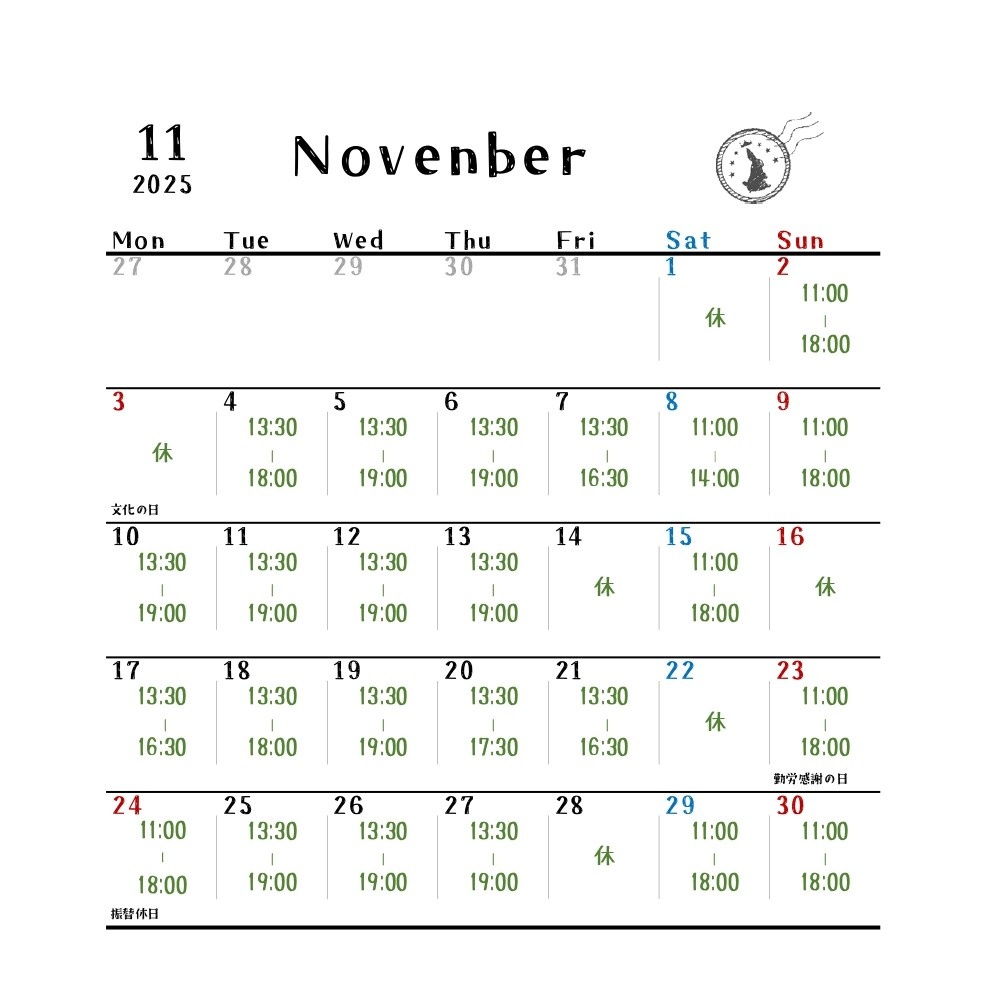 基本の営業時間:平日13:30-19:00 土日祝 11:00-18:00